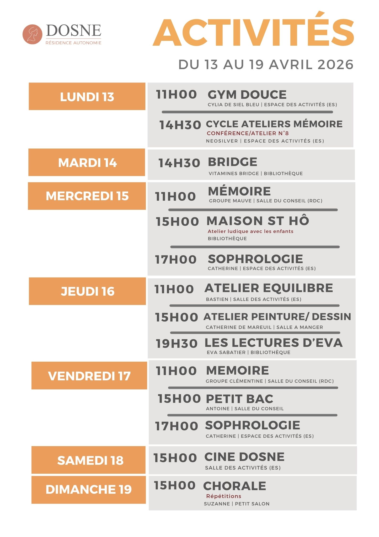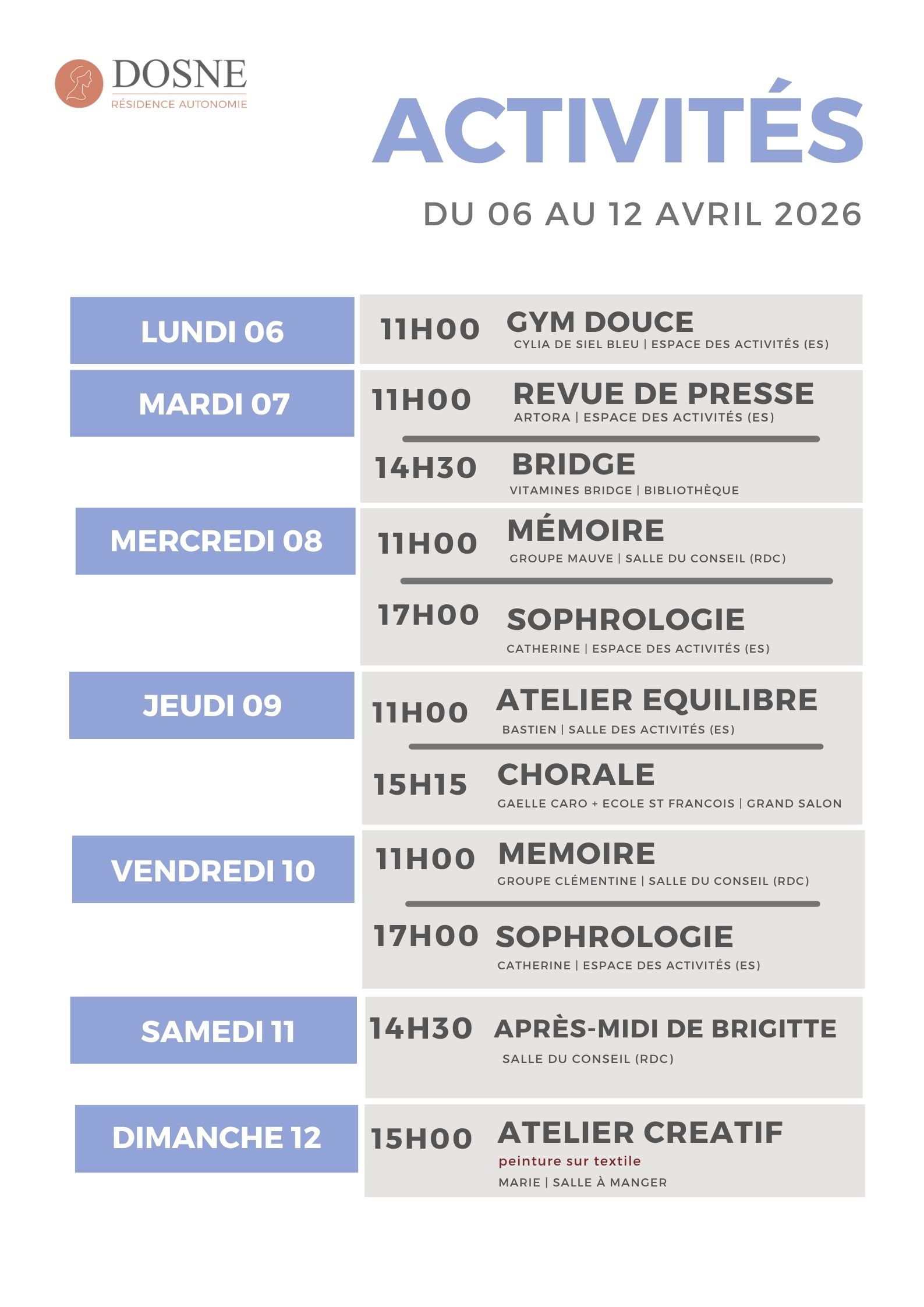 La Résidence Dosne propose quotidiennement des activités et animations. Elles sont adaptées et évoluent [...]