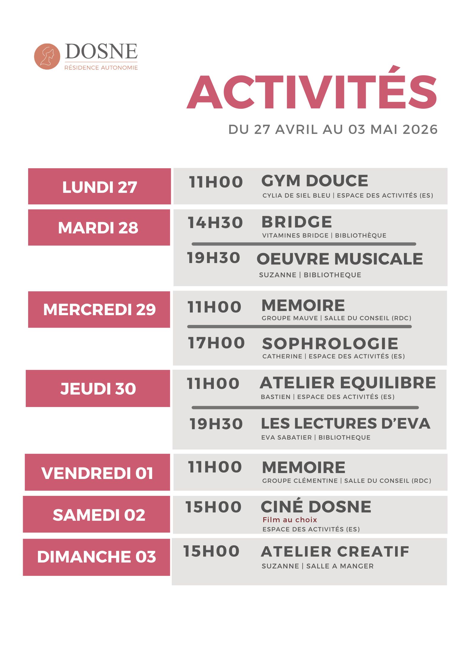 La Résidence Dosne propose quotidiennement des activités et animations. Elles [...]